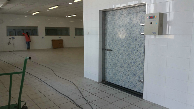 根據(jù)蔬菜批發(fā)商的貯藏及使用需求,該蔬菜保鮮冷庫尺寸為:長54m*寬15m*高4m,總面積為810平米/容積為3240立方米,冷庫分九間,預計可儲存各種蔬菜600-650噸左右。然后按照0~5度的儲存標準來建造,庫板配的100mm聚氨脂保溫板,制冷機組配備了九套12HP箱式頂出風風冷機組(含冷凝器、電磁閥等),冷風機為DL100系列冷風機(9臺)。