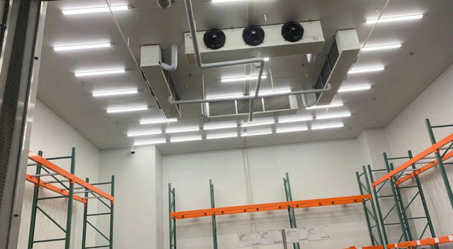 制冷系統:該100平方粉條冷庫制冷系統采用的是1套12匹美國艾默生谷輪渦旋制冷機組,該機組制冷量大,性價比高,安全可靠。同時冷庫內配備1臺上海美樂柯DL29系列高效強風型冷風機,使得庫內降溫速度快,快速對流循環,從而達到每個角落的溫度均勻性。